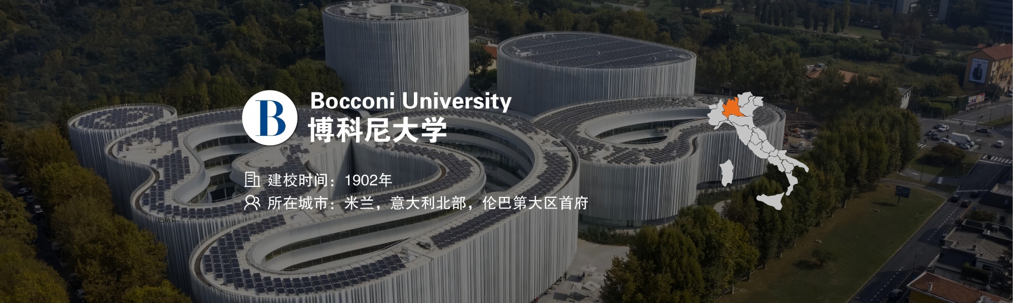 博科尼大学(Bocconi University)于 1902 年由富商费迪南多·博科尼在意大利米兰创立。学校坐落在米兰市中心,是欧洲顶尖的精英商科大学。在 2025 年 QS 世界大学排名中,博科尼大学在多个学科排名中表现卓越,其中「市场营销」全球第 7 名、「商业与管理」全球第 10 名、「社会科学与管理」全球第 12 名、「经济与计量经济学」全球第 17 名、「会计与金融」全球第 19 名。
